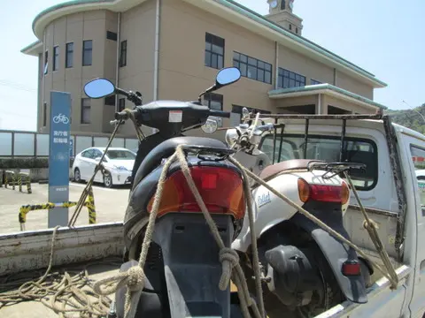 - 鹿児島市吉野町で回収した原付スクーターも、積み込み後すぐに廃車手続き。お客様の手間を最大限減らすサービスが特徴です!